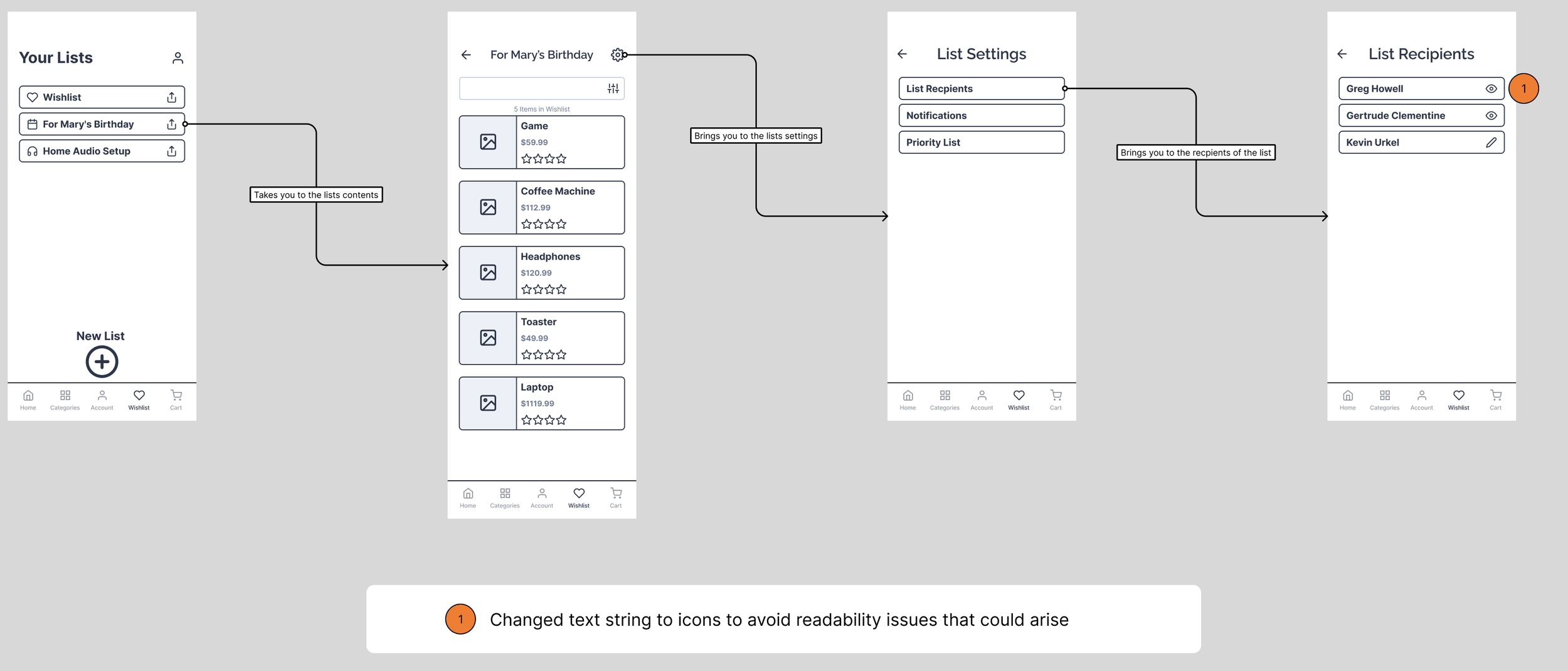 The interactions I want to highlight here are that the heart icon for saving something to your wishlist can be toggled.